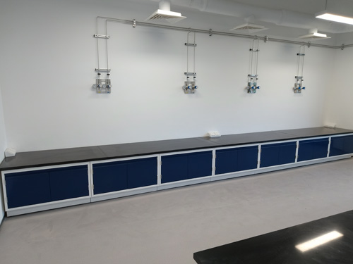 3.促銷活動背板:中心臺中部地區(衣柜平開門上面)為產品閣層,產品后面有可移動式檔板,用以刪掉從地板預先存留或吊頂天花板吊頂引出來基本功能柱到實驗儀器桌面的電、氣蒸汽管道,可在要用一些工貝的條件下加入搶修安全通道。